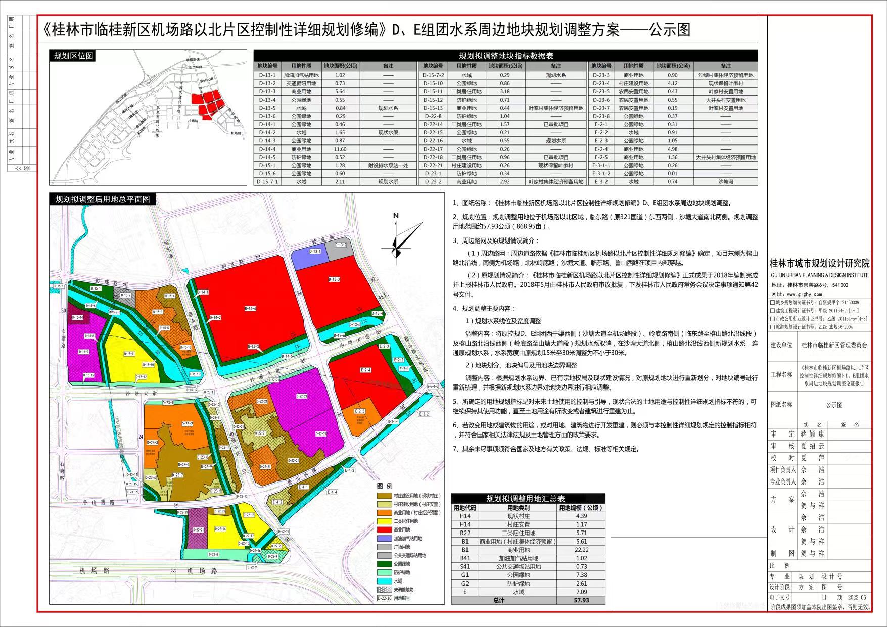 根据《中华人民共和国城乡规划法》要求,现将由桂林市临桂新区管理委员会组织编制的《桂林市临桂新区机场路以北片区控制性详细规划修编》D、E组团水系周边地块规划调整方案予以公示,公开征求相关利害关系人的意见。