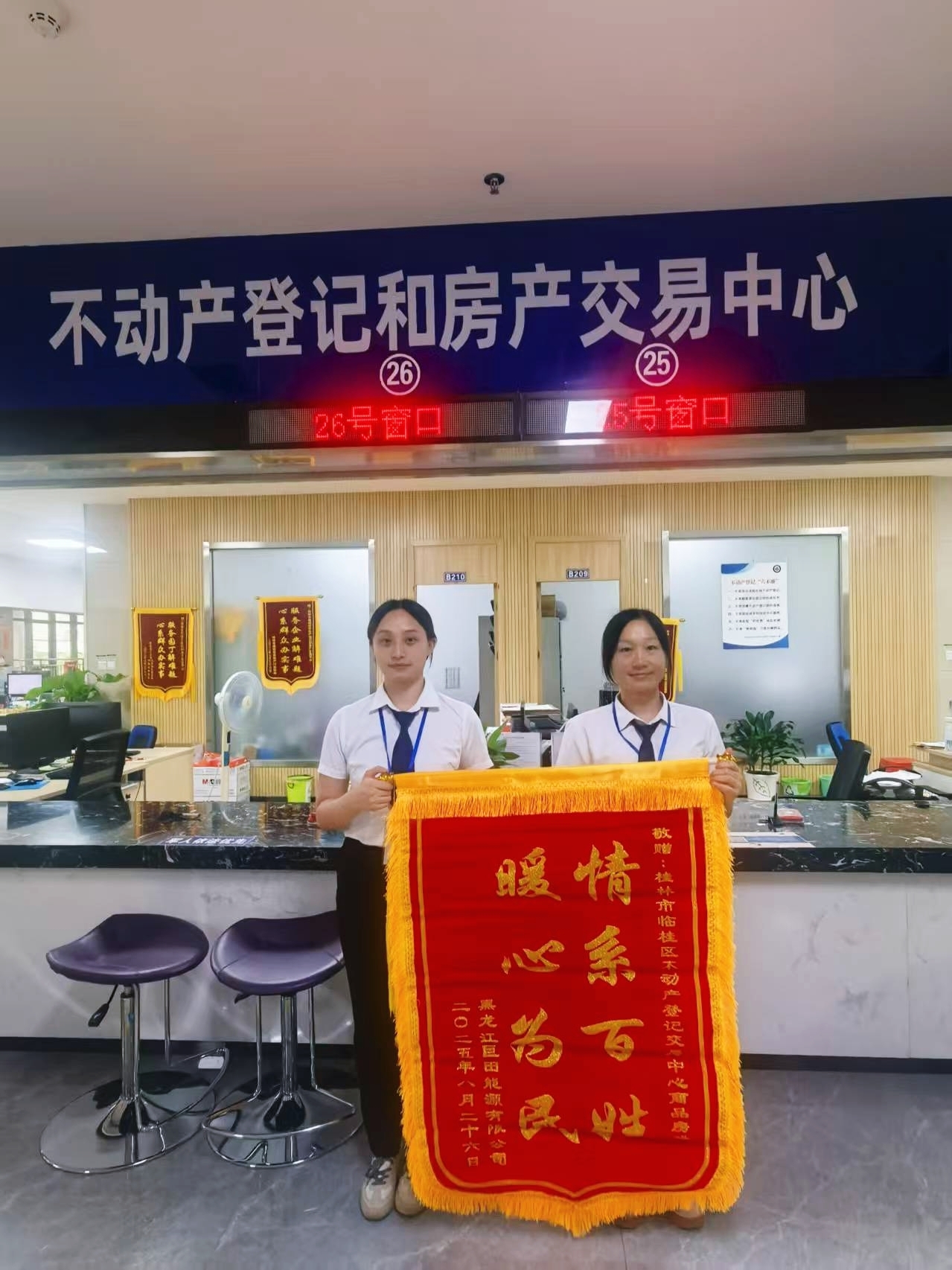 9月1日,临桂区不动产登记和房产交易中心商品房股的荣誉墙上,新增的一面“情系百姓 暖心为民”锦旗格外醒目。它跨越3000多公里,从祖国北疆黑龙江飞抵桂林,既是对窗口工作人员专业高效的礼赞,也是临桂区以“人民为中心”发展理念的一次生动注脚。