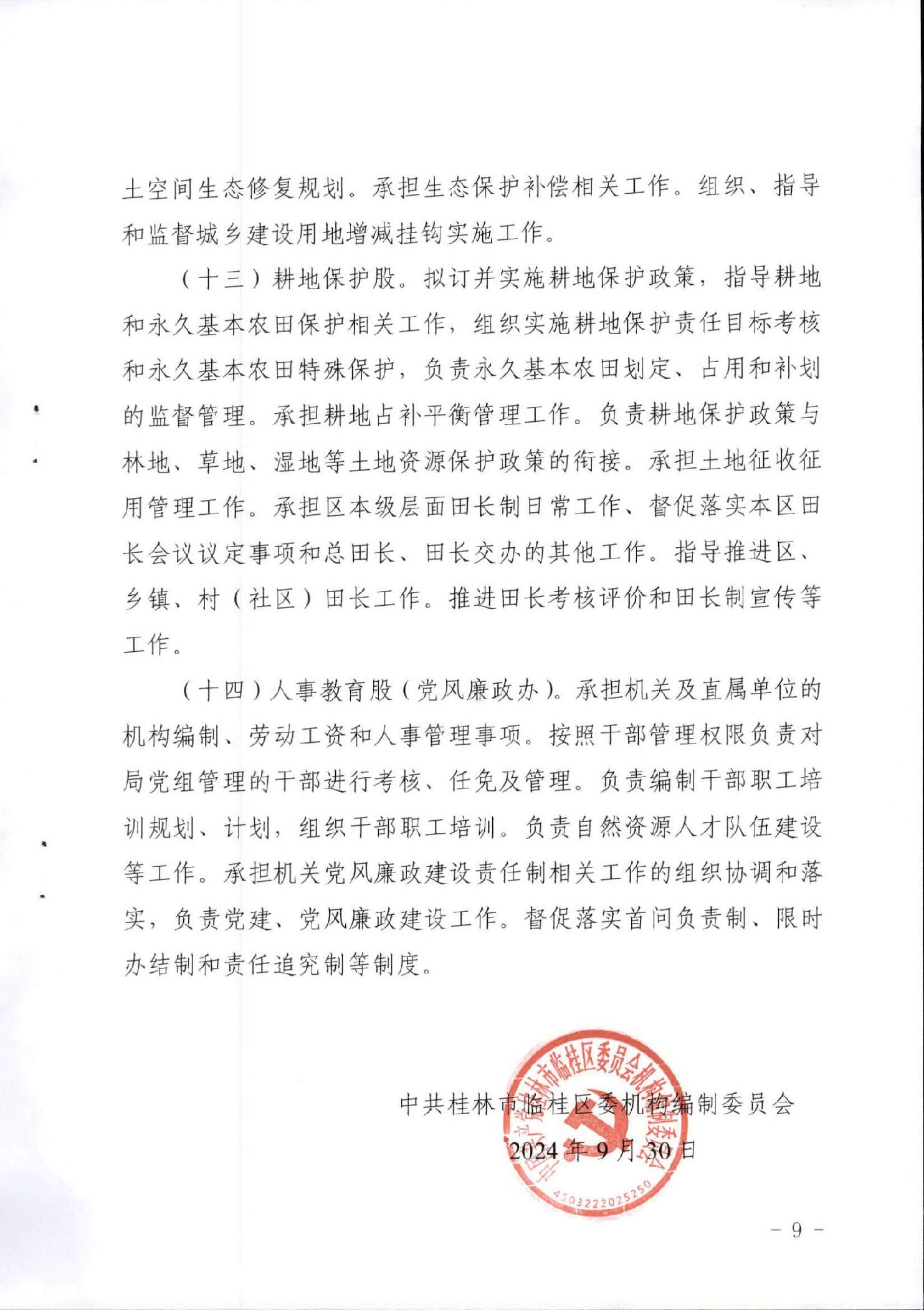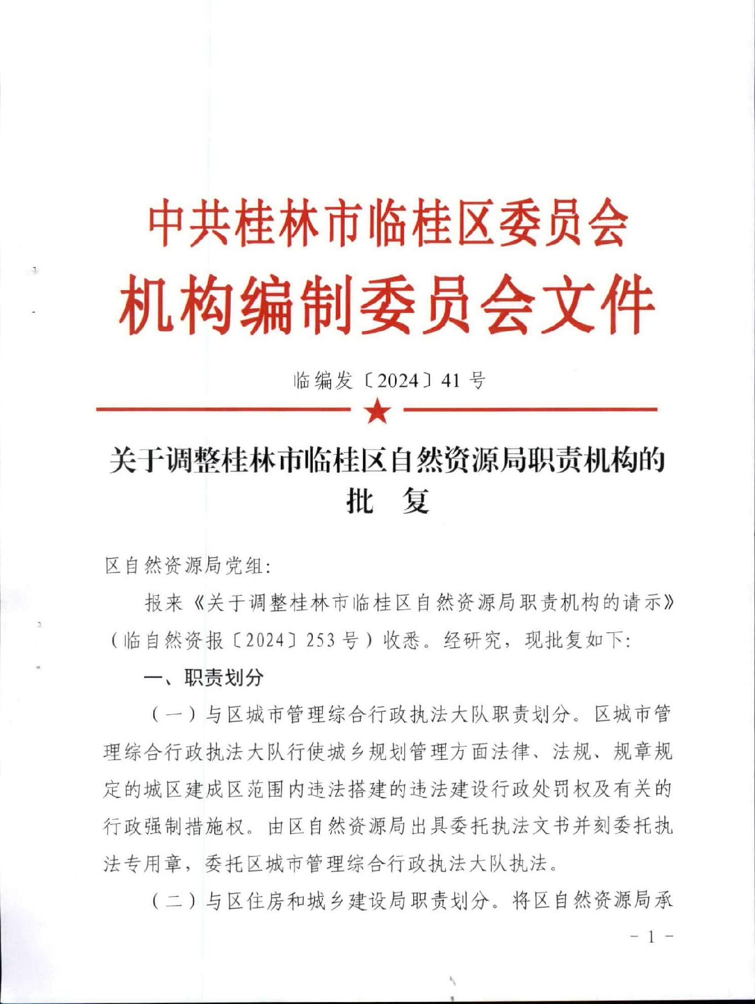 关于调整桂林市临桂区自然资源局职责机构批复(临编发[2024]41号)
